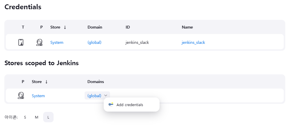 - Dashboard > Jenkins 관리 > Credentials > System > Global credentials (unrestricted)