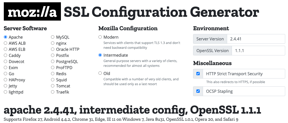 [moz://a SSL] Configuration Generator