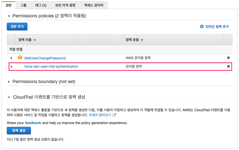 AWS IAM 사용자에게 MFA(Multi-Factor Authentication)를 강제로 적용하는 방법(MFA 강제 적용)