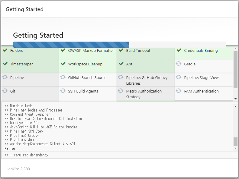 jenkins | Jenkins initial setup is required. An admin user has been created and a password generated.