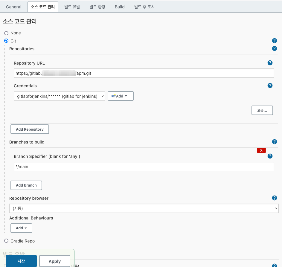Jenkins에서 gitlab에서 받은 Token 넣기