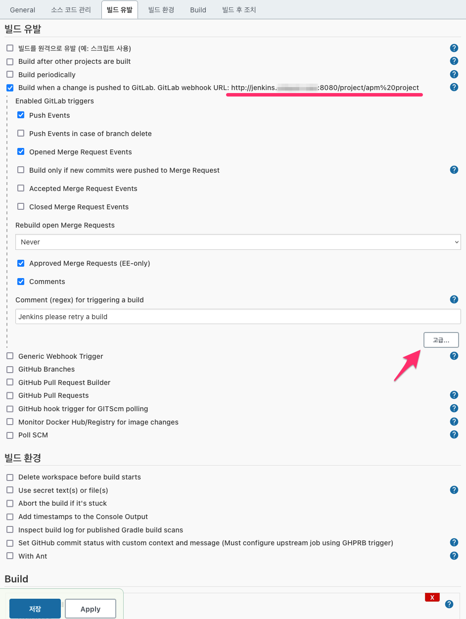 jenkins gitlab 연동(webhook 설정)