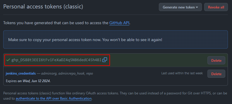 GitHub 계정 설정 > Settings > Developer Settings > Tokens (classic)