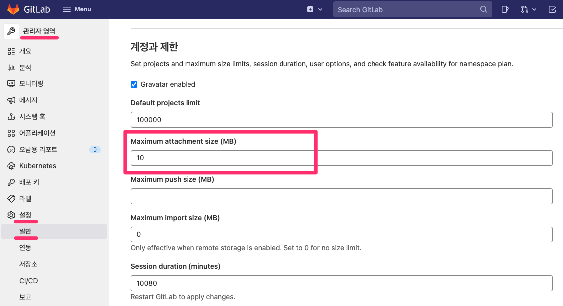 GitLab에서 첨부 파일 크기 제한을 늘리는 방법