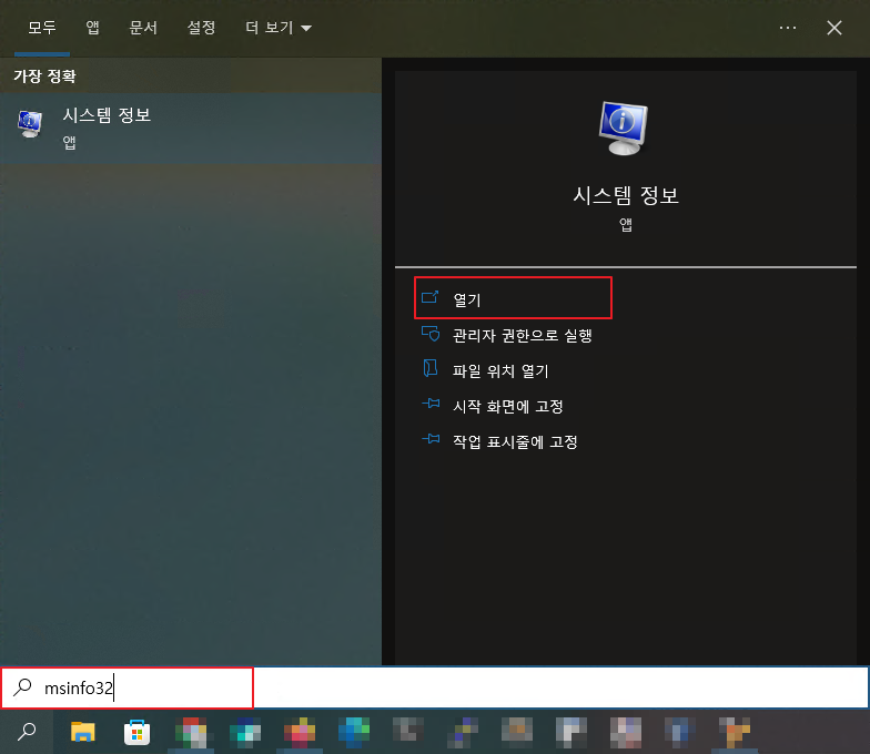 4) 검색창(돋보기) > msinfo32