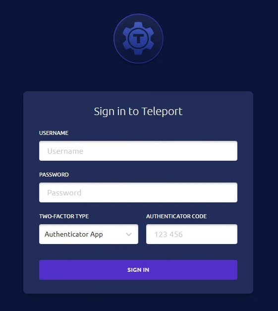 - 텔레포트 웹 인터페이스에 액세스하려면 웹 브라우저에서 다음 URL을 엽니다.
