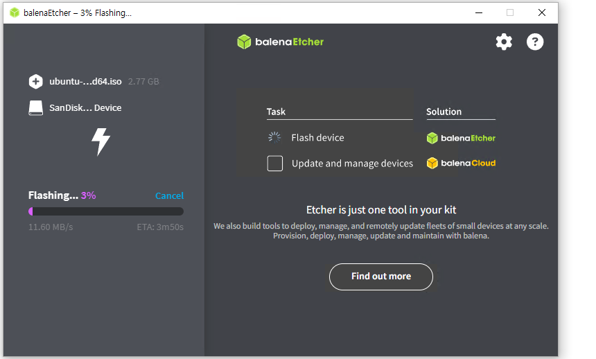 우분투 부팅 USB를 Etcher를 사용하여 만드는 방법