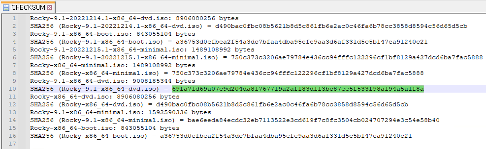 SHA256의 Rocky-9.1-x86_64-dvd.iso 해시: