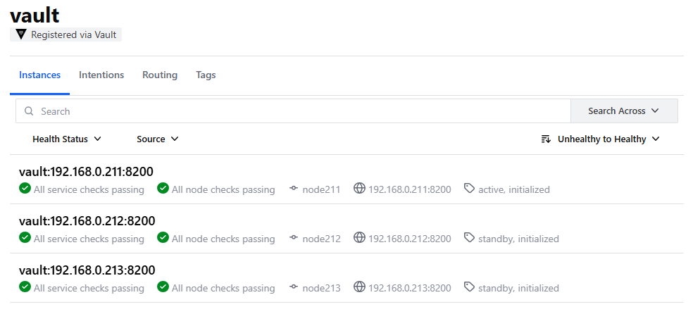 정상적으로 클러스터가 구성되었다면 각 서버에서 Vault의 상태 정보를 확인할 수 있습니다.