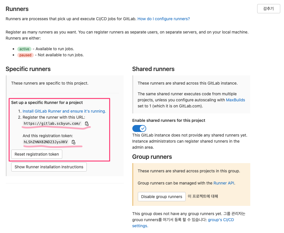 리너에 프로젝트 등록하기(gitlab-runner 등록)