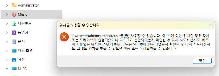 이 디렉토리들은 Windows 시스템의 "라이브러리 폴더"일 수 있으니 주의해야 합니다.