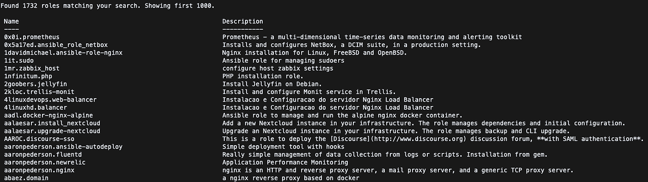 ansible-galaxy role search nginx