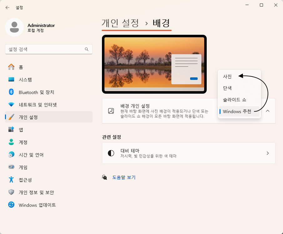 원도우 11에서 "이 사진에 대해 자세히 알아보기" 아이콘을 제거하는 방법