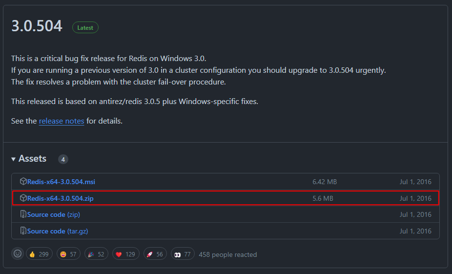 - Microsoft의 Redis 3.0 페이지로 이동합니다. Redis-x64-3.0.504.zip 파일을 다운로드합니다.