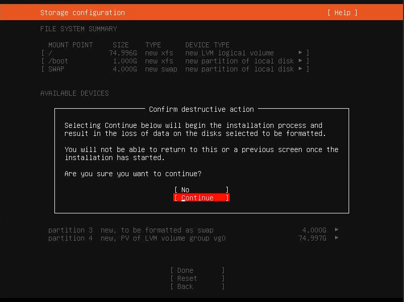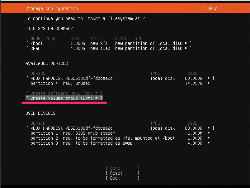 이제 원하는 파티션을 생성하고 LVM을 구성합니다. 다음과 같은 단계를 따릅니다.