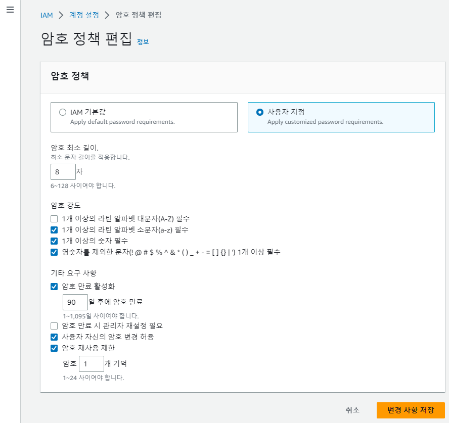 IAM 사용자의 계정 암호 정책 설정