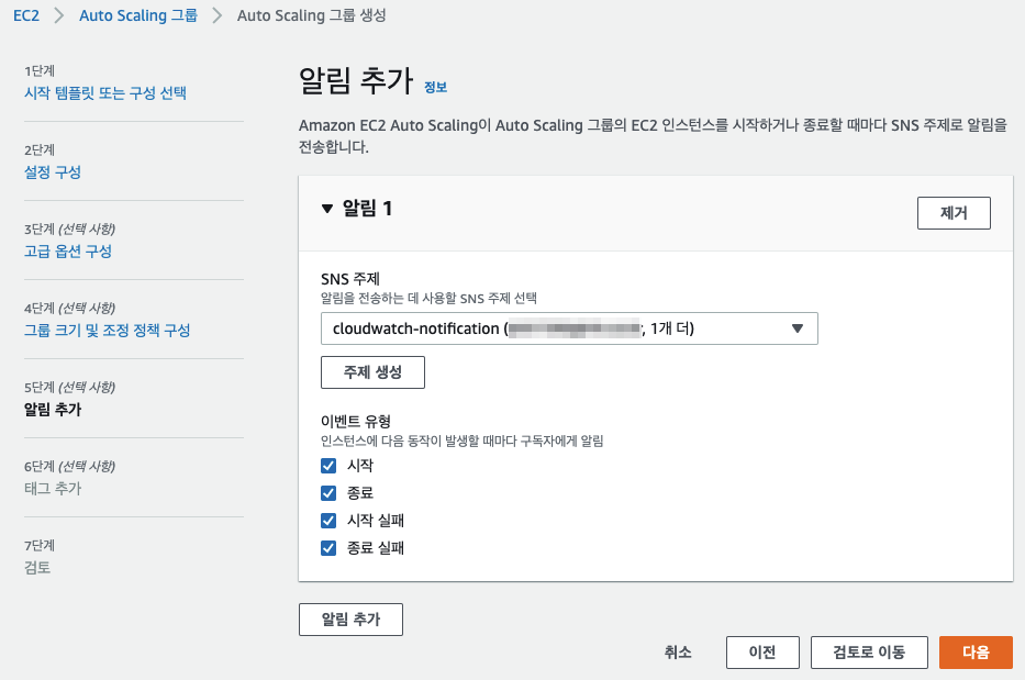 Auto Scaling 이벤트 발생 시 알림을 받을 수 있습니다.