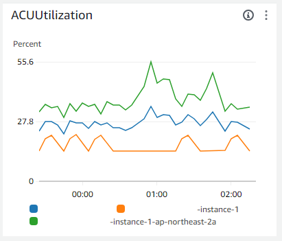 - ACUUtilization(Aurora Capacity Unit Utilization) : 클러스터에서 사용 중인 Aurora Capacity Unit (ACU)의 비율