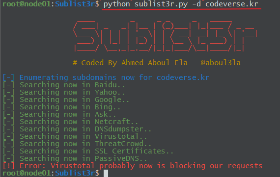 python sublist3r.py -d codeverse.kr