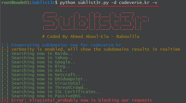 python sublist3r.py -d codeverse.kr -v
