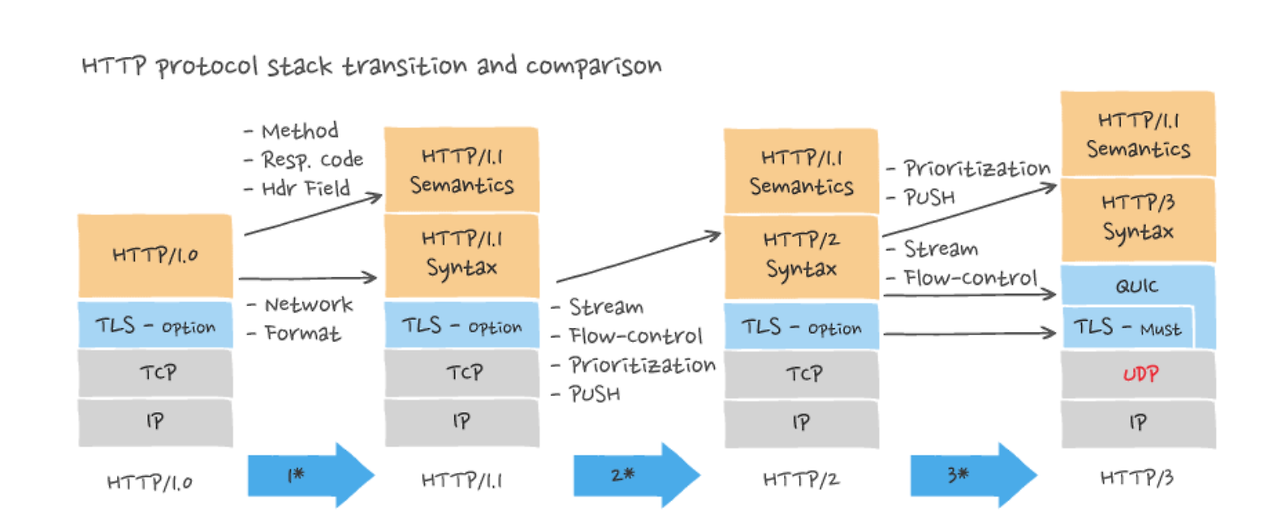 - TCP 대신에 QUIC 프로토콜을 사용합니다. QUIC는 UDP 기반으로 동작하며, 기존 TCP의 성능 이슈를 개선합니다.