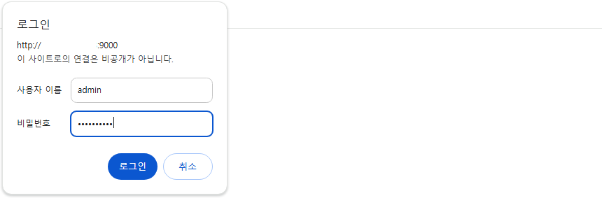 - 비밀번호: admin(설치 중 생성한 비밀번호)