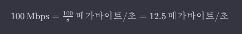 바이트/초 = 100Mbps / 8