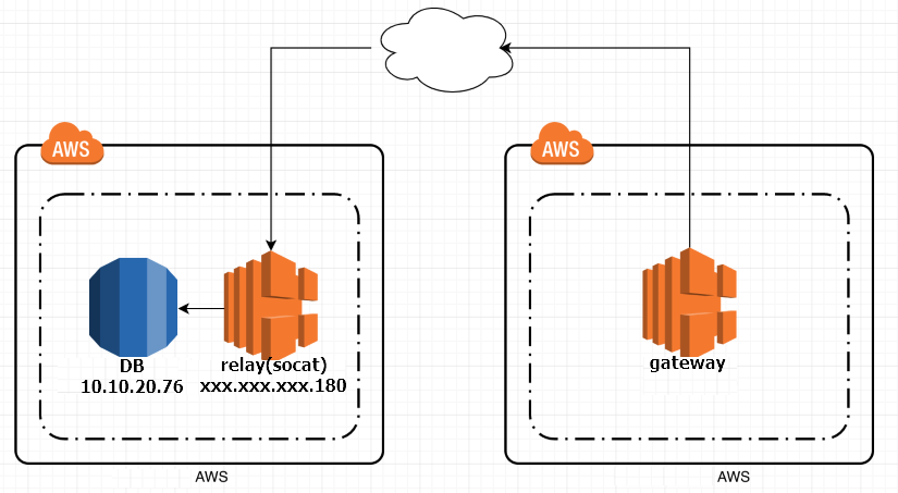 구성 : (gateway -----------> relay -----------> db)