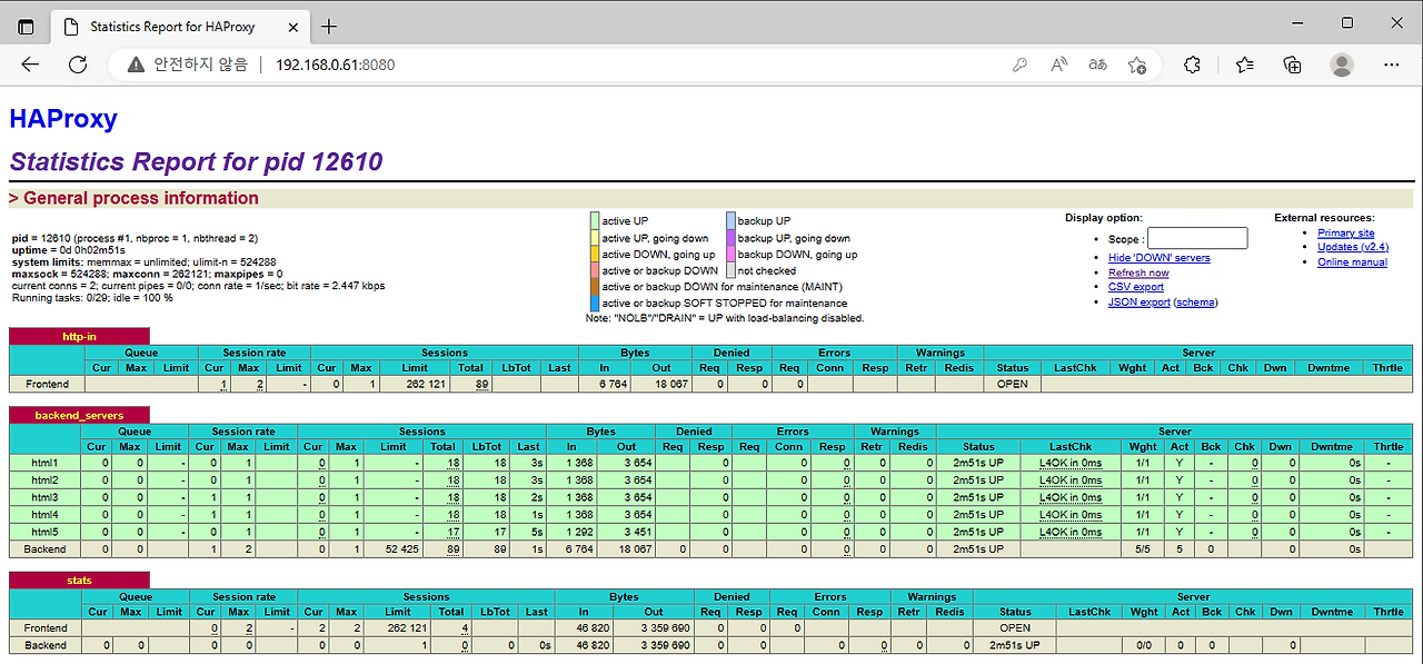 - /etc/haproxy/haproxy.cfg 파일을 편집하여 로드 밸런서를 구성합니다.