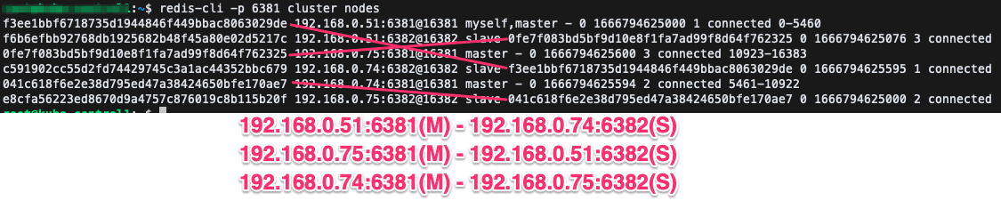 f3ee1bbf6718735d1944846f449bbac8063029de 192.168.0.51:6381@16381 myself,master - 0 1666794298000 1 connected 0-5460