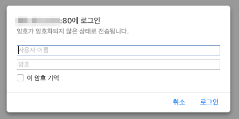 브라우저에서 HAProxy의 프록시 주소로 접근하면 아래처럼 ID/PASSWORD 입력 팝업이 나타납니다.