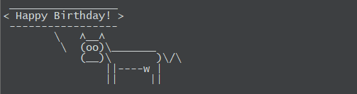 예를 들어, 다음 명령은 소가 생일 축하 메시지를 출력합니다.