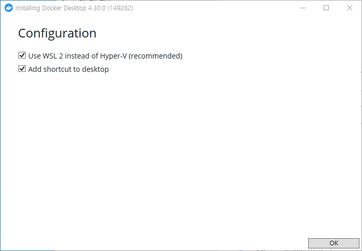 이렇게 하면 WSL 2를 사용하여 Windows 10에 Docker Desktop을 성공적으로 설치할 수 있습니다. 추가적인 설정이나 문제 해결이 필요하다면 Docker 공식 문서나 지원 페이지를 참고하세요.
