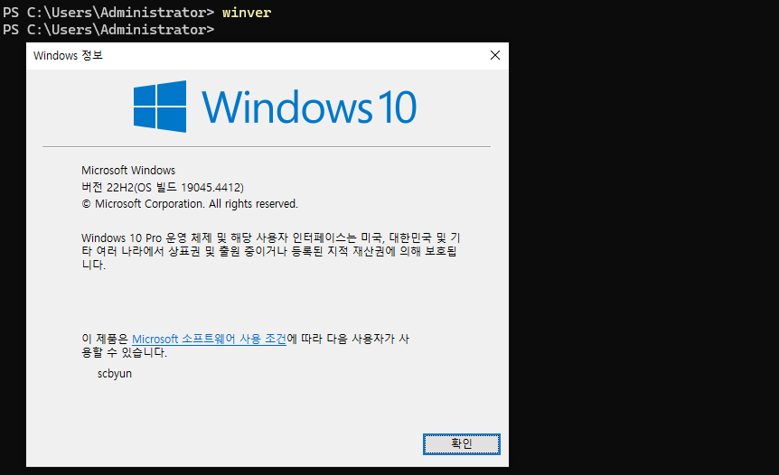 Windows Terminal 또는 PowerShell을 엽니다.