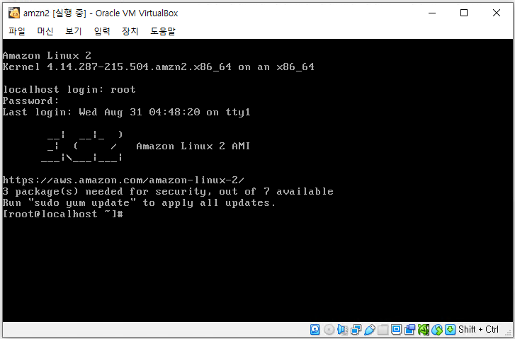 Amazon Linux 2를 온프레미스 환경에서 VirtualBox 가상 머신으로 실행하는 방법