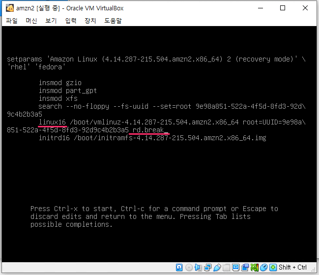 root 패스워드 초기화를 위해 "recovery mode" 진입