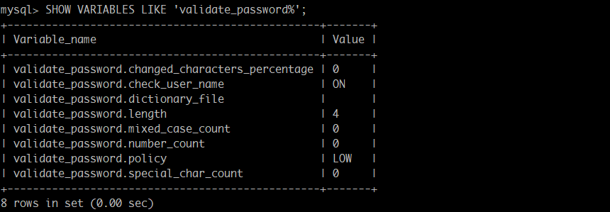 SET GLOBAL validate_password.mixed_case_count = 0;