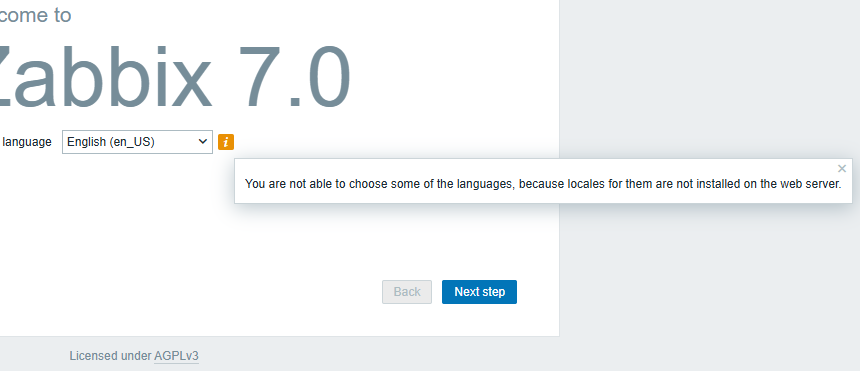 Zabbix 7.0 LTS가 성공적으로 설치되어 사용 가능합니다.