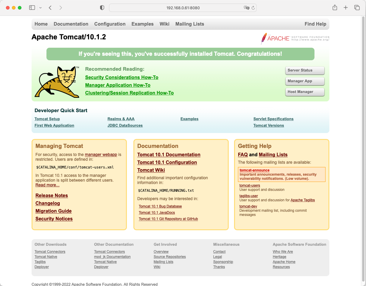 - Download URL : https://downloads.apache.org/tomcat/tomcat-10/v10.1.2/bin/