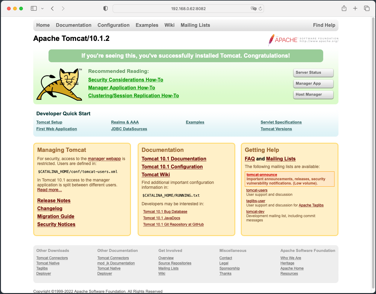 Server version: Apache Tomcat/10.1.2