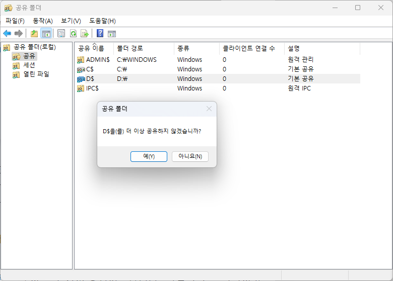 공유(Share) 폴더를 중지하는 방법