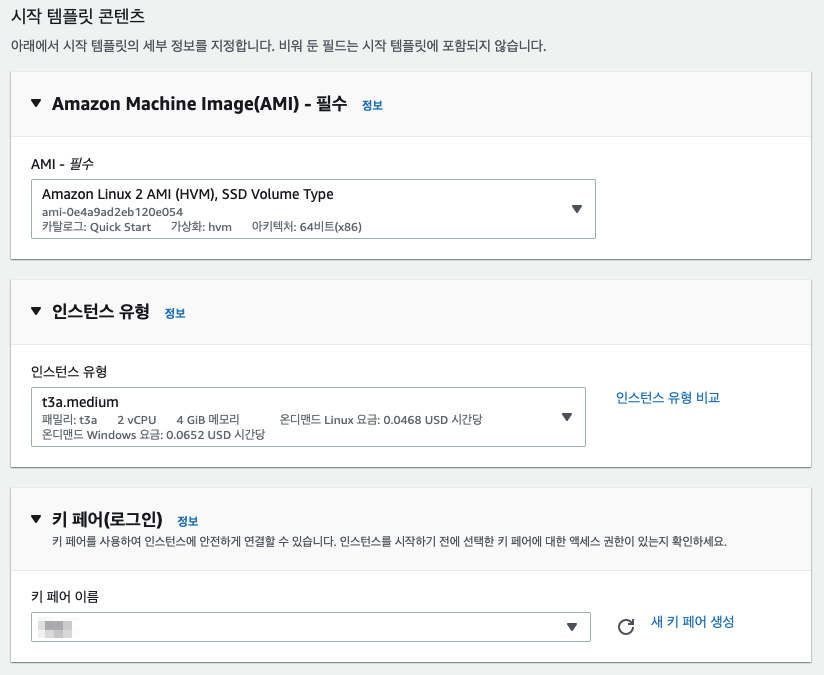 인스턴스 유형 : t3a.medium