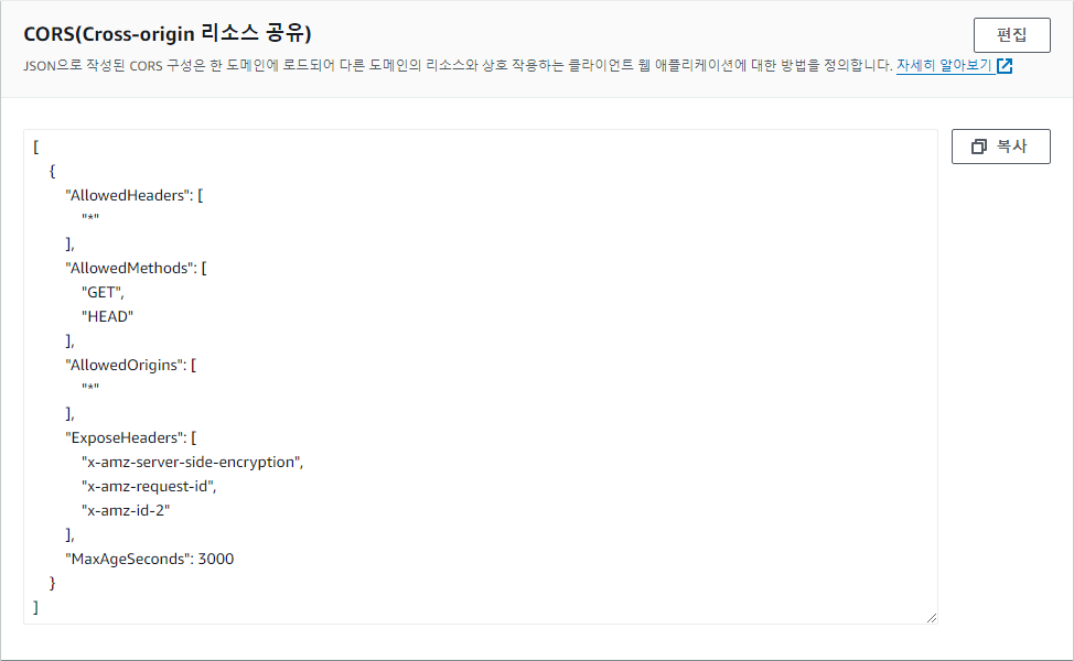 1. S3 버킷 CORS 설정