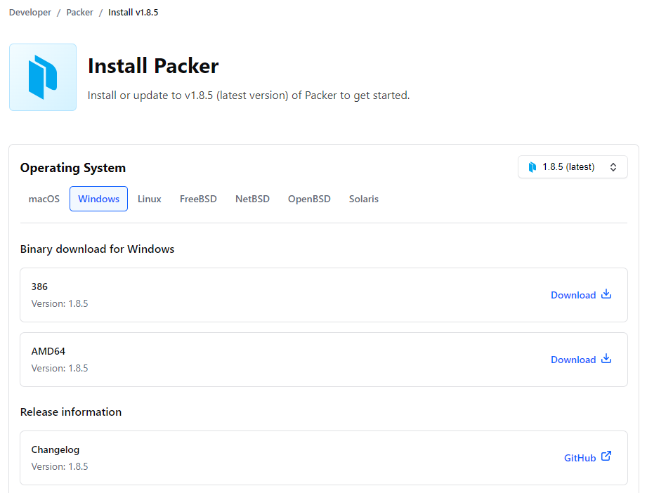- https://developer.hashicorp.com/packer/downloads?host=www.packer.io