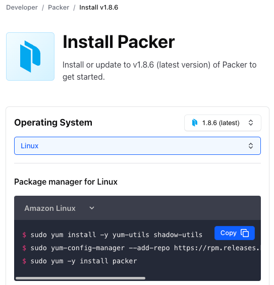 wget https://releases.hashicorp.com/packer/1.8.6/packer_1.8.6_linux_amd64.zip