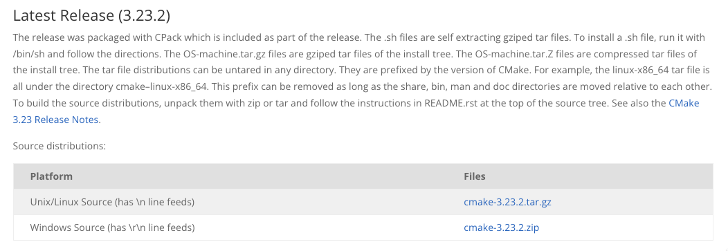 wget https://github.com/Kitware/CMake/releases/download/v3.23.2/cmake-3.23.2.tar.gz