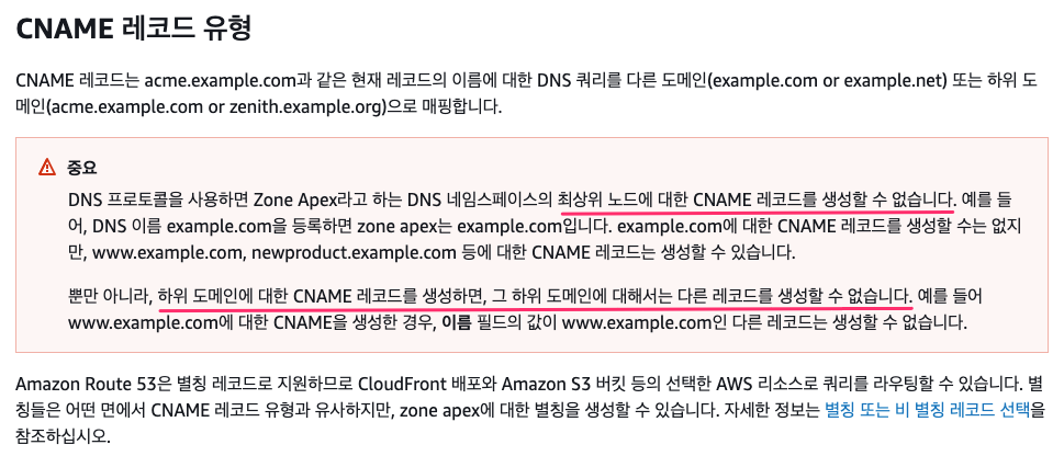 출처 - https://docs.aws.amazon.com/ko_kr/Route53/latest/DeveloperGuide/ResourceRecordTypes.html#CNAMEFormat