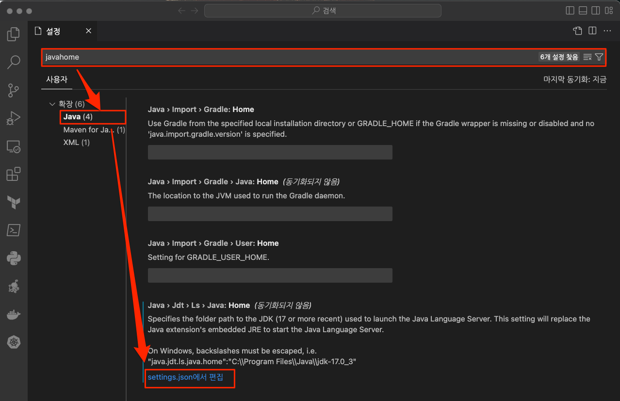 VSCode JAVA_HOME 설정