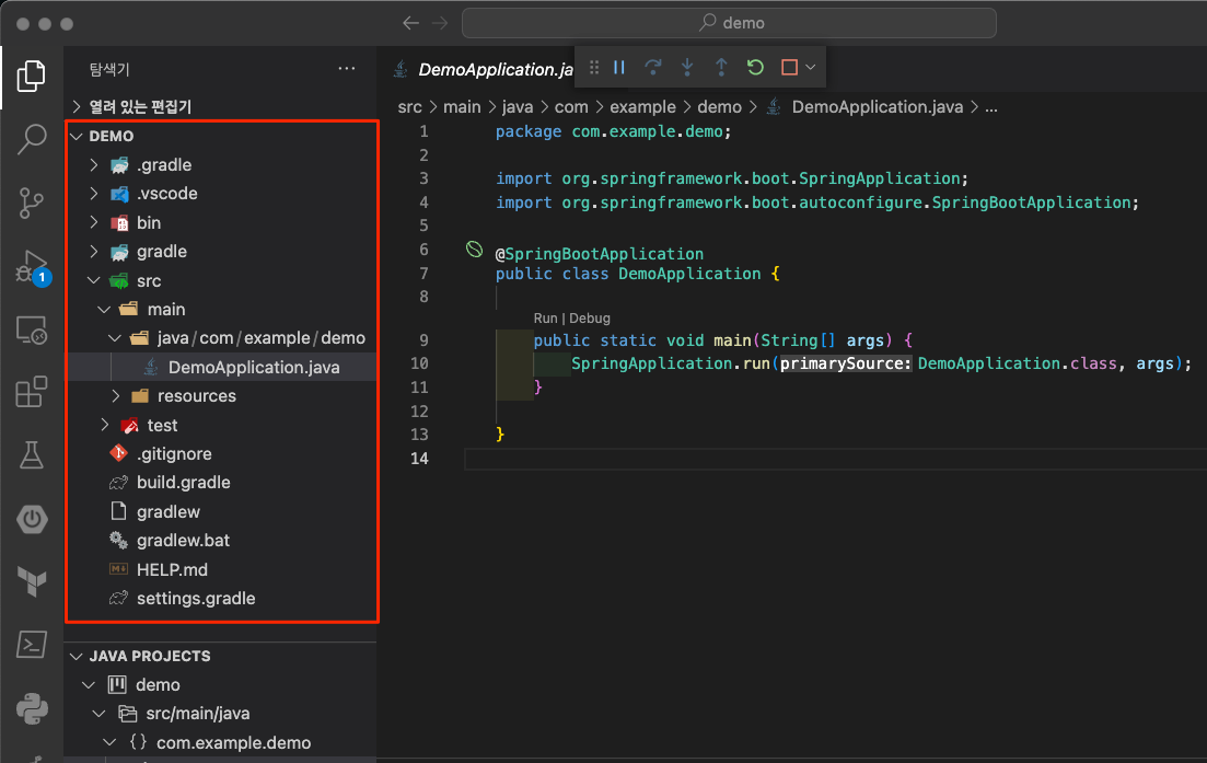 DemoApplication.java 편집