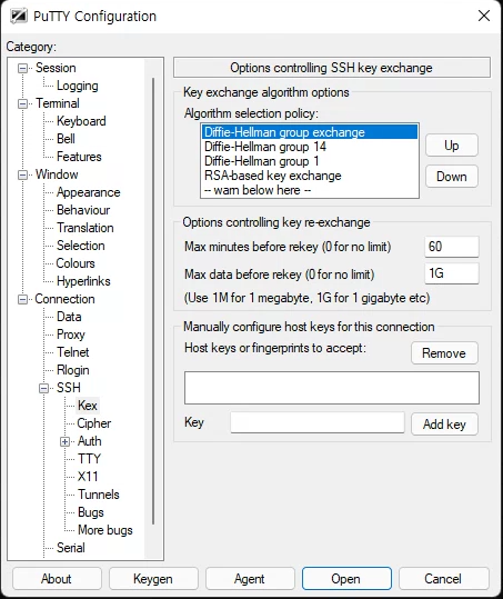 PuTTY 클라이언트에서 키 교환 알고리즘 협상 오류를 해결하는 방법